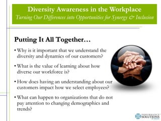 Glassdoor 83 of millennials are more engaged when they think their company fosters an inclusive culture. Identifying and truly understanding the unique differences among people is challengingbut strongly worth the effort. Economic globalization is one of the driving forces of cultural diversity in the workplace.